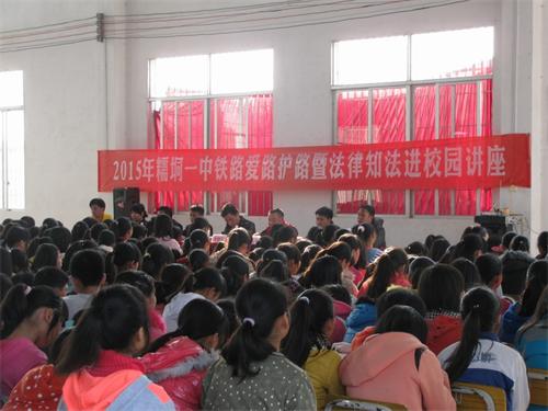 2015年1月23日下午,在岑溪市糯垌镇政府的牵头下,联合岑溪市铁路派出所、新塘派出所、糯垌镇司法所、交管大队糯垌中队到岑溪市糯垌一中给学生们开展寒假前法制安全宣传教育活动。