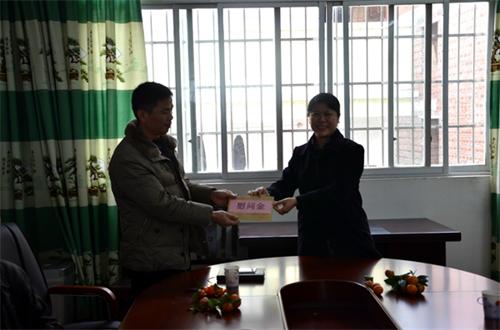 (梧州中院政治部主任李燕芬为岭脚法庭干警送上慰问金)