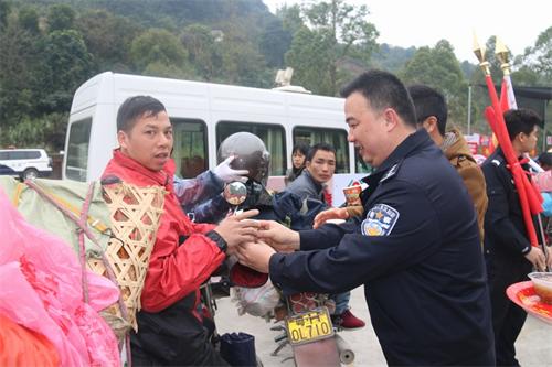 2月10日,岑溪市公安局组织党员、团员义工一行20多人到筋竹春运服务站,开展“党员义工助春运爱心服务送温暖”主题实践活动,为广大驾驶摩托车返乡民工免费提供各种热情贴心服务。