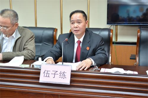 2月15日下午,梧州市龙圩区人民法院召开全院干警大会,欢送龙圩区法院党组书记、院长伍子练同志到梧州市中级人民法院任职,同时迎接张勇同志到龙圩区法院任职。市委组织部常务副部长林树峰,梧州市中级人民法院常务副院长黄炳雄、梧州市委政法委委员、政治部主任苏先文以及市委组织部干部一科科长覃家强等领导出席了会议。