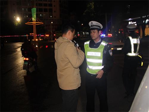 为确保行动取得成效,当晚,参战民警在车流量大的旺城路口(旧一中雕塑)设立临时检查点,采取定点检查与流动巡逻相结合的方法,对过往车辆酒后驾驶、涉牌涉证等违法行为进行查处,并利用酒精检测仪等设备对有酒驾嫌疑的驾驶人进行严格检查。在执法过程中,民警坚持文明执法,注重执法与教育相结合,向广大驾乘人员和过往群众宣传酒驾危害,提高他们的交通安全意识,提醒广大群众时刻注意交通安全。