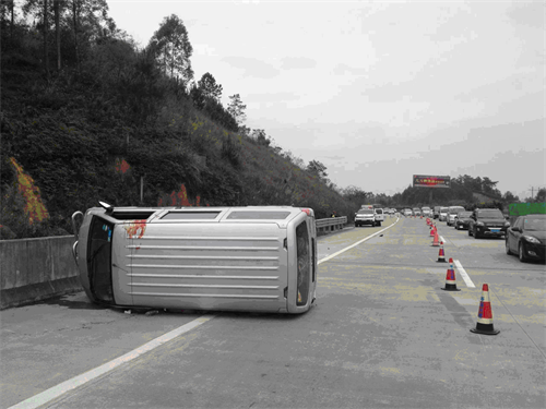 大队民警接警后,迅速出警,并联系救护人员,民警赶到现场后在来车方向摆放反光锥筒,防止二次事故的发生,此次事故造成了占用慢车道和应急车道,民警迅速疏通应急车道让救援车辆迅速到场,并和医护人员一同把受伤人员送院救治,历时一个半小时,肇事车拖移现场,恢复交通。