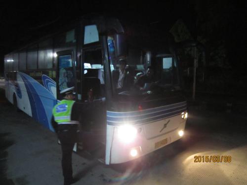 近日,正值2015年春运返程高峰,道路旅客运输需求量激增,客车违规运行现象突出。3月5日—3月12日,每天22时—次日6时,岑溪市公安局交通管理大队根据公安部交管局的统一部署强势推进夜查执法,严查凌晨2时至5时公路客运车辆违法上路的。希望过往客车、客运企业、有车单位摒弃交通陋习,文明参与道路交通。