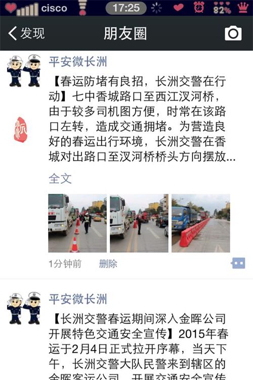 “平安微长洲”,是梧州市城区交警大队首个政务微信。