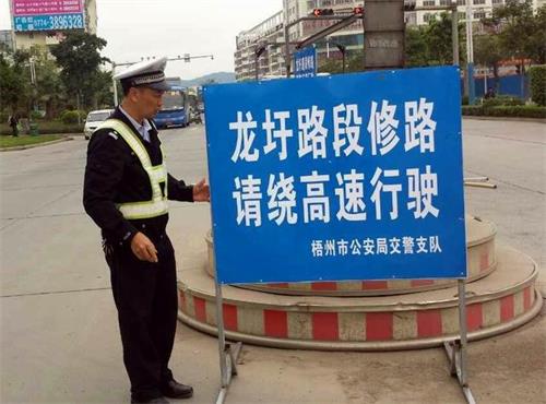 为确保新修路段的道路交通安全,同时为了有效分流以缓解辖区交通压力,4月8日,长洲大队分别在毅德城路口、市检院红路灯路口、福兴红绿灯路口、汊河桥底(西堤三路)、汊河桥南桥头、盈洋家私路口的六个主要路口,摆放了“龙圩路段修路,请绕高速行驶”的临时交通引导标牌,根据不同情况分别引导车辆上高速道行驶。以缓解修路带来的交通压力,以缓解由西江大桥前往梧州市南站的207国道的交通压力。