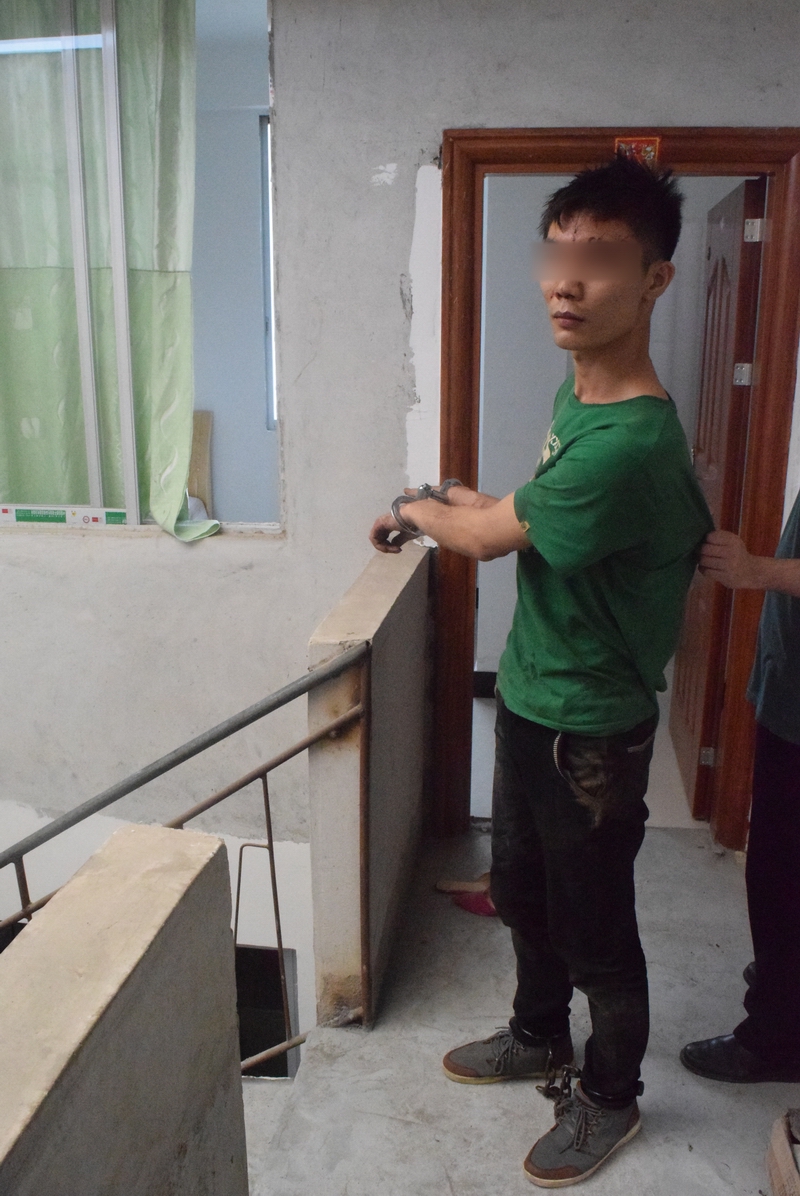 4月8日下午,经岑溪市人民检察院批准,公安机关依法对一名爬入邻居家的房间抢夺苹果手机的犯罪嫌疑人陈某某执行逮捕。