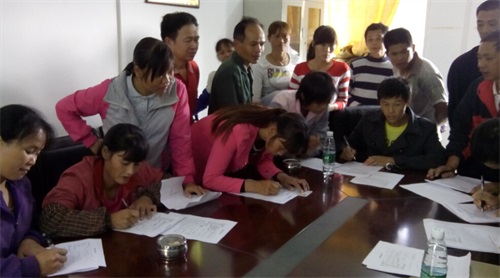 (藤县法律援助中心工作人员到公司为农民工办理法律援助申请手续)