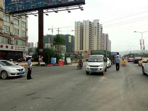 二是合理渠化,诱导分流车辆。对城南大道大转盘路口、松脂厂广信路口设置等主要路口,进行合理施划标线,增设交通诱导标志、标牌,引导辖区车辆通行;同时增设施工交通流量大的重要路段增设红绿灯配时,合理管控车流,尽最大可能确保道路交通畅通。