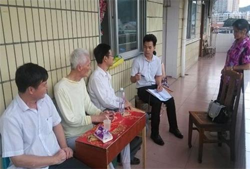 (桂江律师事务所谢明宏律师在梧州市社会福利院向梁老伯了解案件情况)