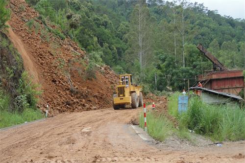 (连日暴雨致山体滑坡道路受阻)