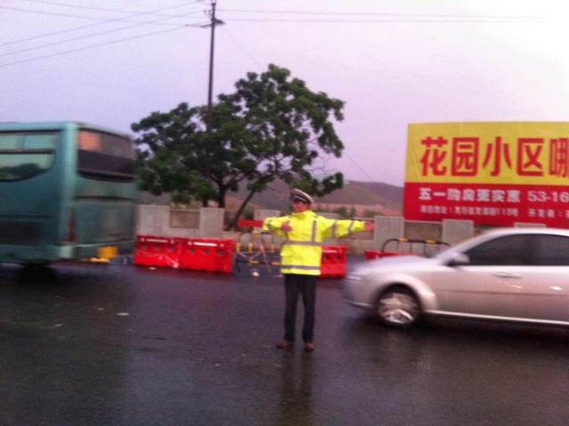 一、领导带头,组织部署到位。这场暴雨从25日下午持续到晚上,且雨势不减,造成道路视线不良,车辆通行缓慢,时有交通刮蹭事故。大队领导从一开始即在辖区路面巡视,并一线指挥、调度工作,并逐一检查重点岗位责任落实情况,既当指挥员,又当战斗员,极大鼓舞了民警的士气。为有效应对暴雨天气的交通管理工作,警情就是命令,大队迅速启动恶劣天气应急处置预案,大队认真落实层级责任制,要求全体民警在思想上要高度重视,在措施上要积极落实,在服务上要耐心细致,要求配置好雨衣、反光设施等装备和清障力量,全力以赴疏导交通,确保有事故发生时能快速处置、快速撤离现场。同时,大队及时向辖区党委政府报告,引起党委政府重视,争取支持配合。并通过微博平台和微信平台发布暴雨提示短信5余条,及时提醒市民和司机朋友在通过隧道及低洼积水地段时谨慎驾驶,减速慢行。