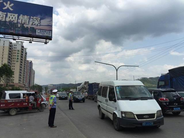 近段时间,受强对流天气的影响,龙圩区境内连日出现高温炎热和雷雨天气。高温及大雨恶劣天气频繁,使道路交通安全隐患增多。龙圩大队辖区内因高温引发故障的车辆、雨天引发的车辆失控碰撞事故时有发生。因此,为了迅速贯彻落实部局“6.8”紧急视频会议精神,全力做好汛期及高考期间道路交通安全管理工作,切实遏制交通事故的发生,做好即将在我区召开的第六届广西园林园艺博览会期间的交通管理工作,大队迅速行动,采取有力措施,保障辖区道路的安全畅通。