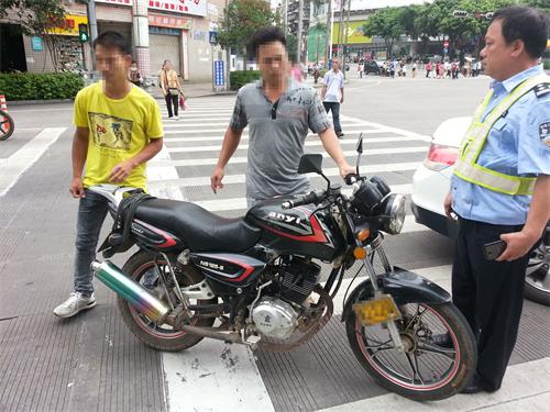 交警马上通知前方民警设卡拦截,前方民警接到通知后,迅速设开警车拦截摩托车。眼看前方无路可逃,小伙企图弃车逃跑,此时民警已追了上来,将其控制。