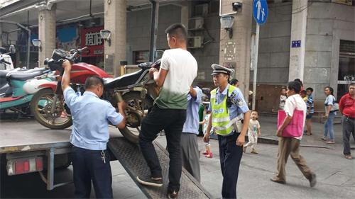 骑楼城作为梧州近现代百年商贸繁华的历史见证标的,车流量、人流量较大,走进骑楼城牌坊,一辆辆摩托车、电动车随意停放在道路两旁,一定程度上影响了道路的通行秩序。整治人员先是通过喊话来寻找车主,让车主将车辆及时驶离或停在泊车位上;对于车主不在现场的,则采取清拖措施。为增大行动覆盖面,大队将战线延伸至西江路、中山路、新兴路、蝶山路、文澜路等重要道路,以定点执勤和不定时巡逻相结合方式,加大对违章停车的处罚力度。三日来,大队共查处违法停车300多起,拖移车辆20多台,有效规范了辖区的停车秩序。