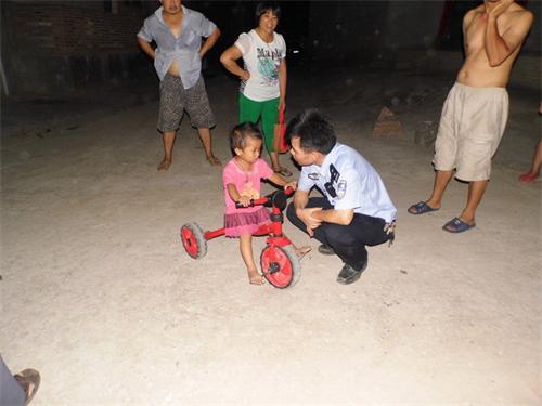 当天傍晚时分,归义派出所值班民警在处警回来的途中接到群众报警:称在街道上发现一小孩独自玩耍,极有可能是走失的小孩。民警获悉后,马上赶赴现场发现有一约2岁多的女孩独自在街上玩耍,可能是走失了不知道怎么回家。随后,民警带着小孩在附近商铺、住户走访未果后将小孩带回派出所,并通知社区干部来辨认和协助寻亲。