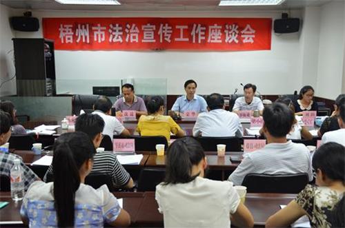会前,参会人员参观了梧州市首个法治示范社区——万秀区蓝天社区,听取了社区党支部书记陈红兰对社区开展普法活动的介绍。会上,各县(市、区)司法局对今年以来本地在“六五”普法总结检查验收准备及法治文化阵地建设等方面的情况进行了汇报,并介绍了下半年普法宣传工作计划。市司法局党组成员、纪检组组长就如何进一步推动法治宣传工作全面开展提出了要求,并就“六五”普法总结检查验收工作进行了部署。