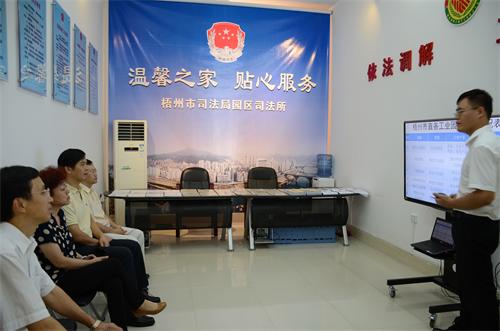 自治区司法厅基层处处长梁和民、梧州市司法局局长蒙华、纪检组组长罗振业陪同调研。
