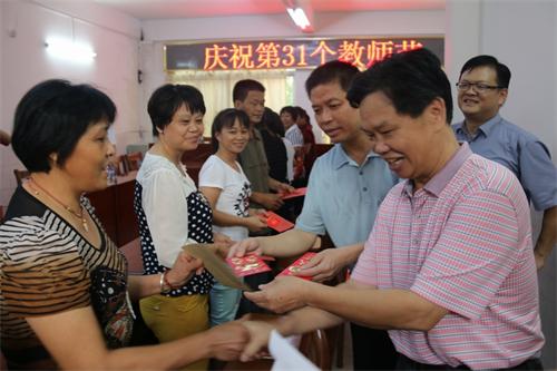 座谈会后,岑溪市副市长、公安局长梁兵等领导分别代表岑溪市委、市政府、岑城镇党委政府和教育局为岑城镇的优秀教师代表送上了节日慰问金和慰问品,并向他们致以节日的祝福和问候,祝他们教师节快乐、工作顺利、身体健康、合家幸福!