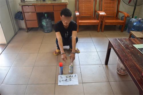 近日,岑溪市公安局民警经过连续两个多月巡逻伏击和调查,成功将在他人住宅大门乱喷大字,故意损毁他人财物的违法人员高某龙抓获,并依法予以行政拘留五日。