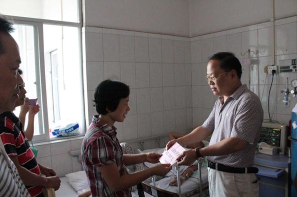 9月30日下午,万秀区司法局局长魏钊生将全局干部职工捐的3000元钱交到月桂社区重病患者王颖怡的母亲封小兰手上时,封小兰激动的握着魏钊生局长的手说:“谢谢万秀区司法局领导和同志们的关怀。”