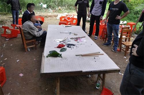 10月12日上午,岑溪市公安局禁赌专业队根据群众举报,在岑溪市大业镇胜垌村河口组一山头一举捣毁一个以“抓摊子”形式进行赌博活动的赌博窝点,当场抓获涉赌人员4人,并依法对他们予以行政拘留处罚。