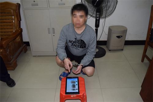 接报之后,岑溪市公安局城北派出所领导对案件高度重视,迅速组织民警对案件进行了调查。针对嫌疑人的行为和心理特征,民警分析该男子迫切要求小雨见面,才使用了散布照片的手段,企图让小雨就范,民警决定利用嫌疑人的心理来一个“引蛇出洞”。上午11时许,经过2个多小时的周旋,嫌疑人以为小雨已经屈服,放松了警惕,邀约小雨到其住处坐坐,竟然还要求小雨顺带为他打包米粉。在民警的安排下,小雨答应了嫌疑人的要求。二十分钟后,小雨在民警的暗中保护下,来到了对方提供的出租屋房间,正当该男子若无其事地拿起米粉在吃的时候,民警冲进房内将其抓获,在嫌疑人房间内民警发现了其作案时用的平板、台式电脑。