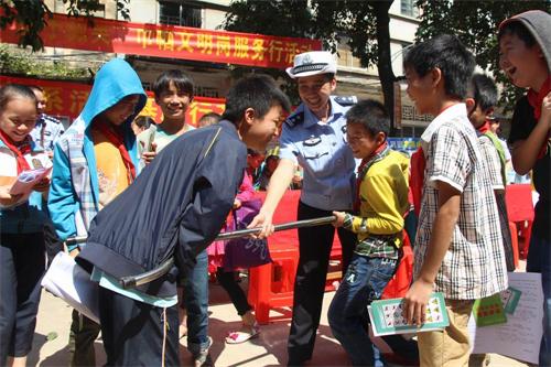 (民警教学生使用警用器械)