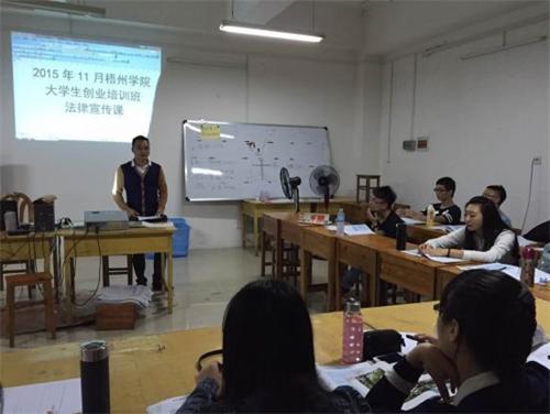 11月15日下午,万秀区司法局东兴司法所应梧州学院的邀请,来到梧州学院大学生创业中心,为该学院即将毕业的学子们上了一堂生动有趣的法律宣传课。