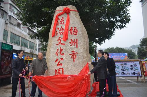 潘塘公园作为梧州城市居民一个生活服务平台,在12月4日“国家宪法日”,这里成了梧州的“城市法治客厅”,当天,该市首个“法治文化主题公园”建设启动,多部门还联合编排的一台《与法同行》文艺演出,演绎着一个个“弘扬宪法精神,落实谁执法谁普法,全面推进梧州法治建设”的动人故事。