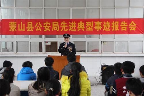 为加强公安机关先进典型宣传,讲好蒙山警察好故事,弘扬警队正气,传递正能量。12月9日,蒙山县公安局组织先进人物代表蒙山县公安局党委副书记、纪委书记、看守所所长叶献荣同志,社区民警之星蒙山镇派出所副所长谢朝民到蒙山县夏宜民族学校、文圩中学等学校进行先进事迹宣讲。