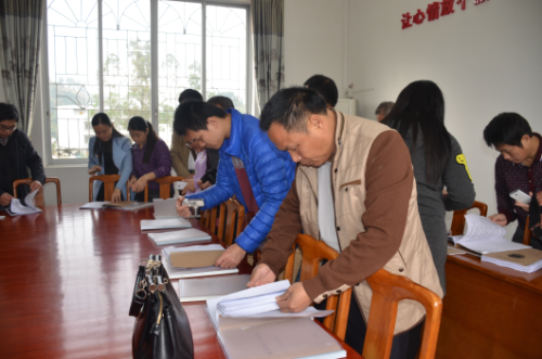 (与会人员查看岑溪市司法局糯垌司法所规范化建设工作材料)
