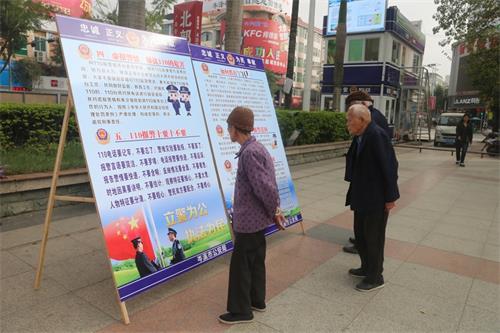为深入宣传30年来“110”在依法打击违法犯罪活动、保障人民群众安居乐业、推进平安建设等工作中发挥的重要作用,全方位展示30年间尤其是党的十八大以来“110”工作取得的显著成绩和实现的跨越式发展,进一步增进人民群众对公安工作的理解和支持。1月8日上午,岑溪市公安局政委黄云龙带领该局110指挥中心、宣传、经侦、禁毒、刑侦、网安、交管、消防等警种民警,在岑溪市人民广场开展110主题宣传活动。