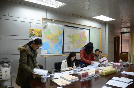 考评组成员认真检查梧州市司法局2015年度党建工作台账