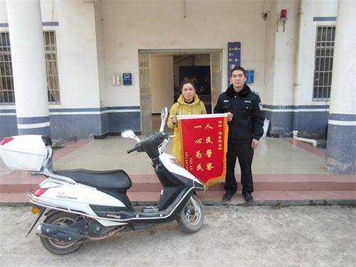 2月22日,被盗摩托车车主朱某武将写着“人民警察,一心为民”的锦旗送到潭东派出所,以表对民警的感谢之情。