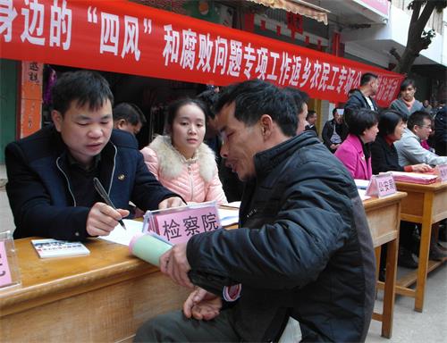 “我村有一笔款项去向不明,我想向检察同志反映……”、“检察官,快要过年了,可是老板迟迟不发工资给我们,这事你们管不管……?”;“请坐下来,您慢慢说……”、“您反映的问题我们已作记录,待调查核实后依法给您答复……”这是岑溪市检察院参与2016年春节期间全市在各镇开展返乡农民工专场公开大接访活动中常常听到检察官与群众对话情景。