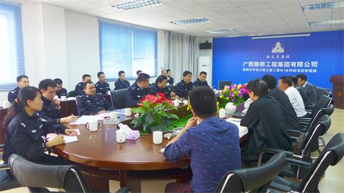 为加强企业回访,落实解决企业难题,深入推进服务发展周活动,3月8日上午,由梧州市公安局指挥中心政委钟超华,万秀分局秘书科科长李衍华、长洲分局副局长莫林清、龙圩分局副局长黄振华、苍梧县局副局长欧华以及辖区内各个派出所的领导组成的公安机关服务发展周回访小组,到广西路桥集团有限公司进行了回访。