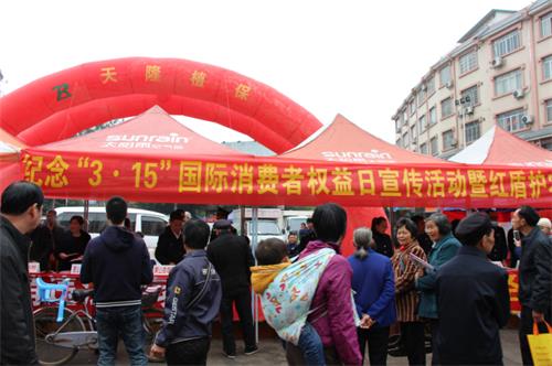 3月15日,蒙山县公安局经侦大队联合蒙山县质量技术监督局、蒙山县工商行政管理局、蒙山县消费者权益保护委员会等有关部门,在蒙山县城新世纪广场开展纪念“3·15”国际消费者权益日宣传活动暨红盾护农启动仪式,进一步提升人民群众识假防骗、维护消费权益的能力。