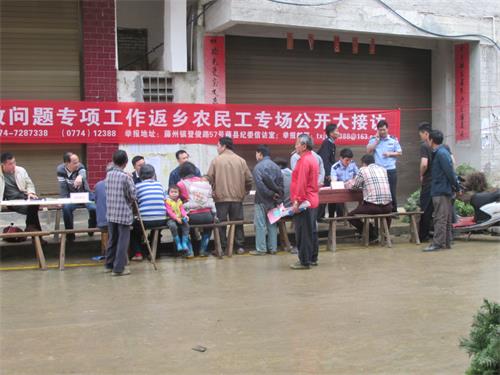 4月22日至25日,藤县公安局大黎派出所联合大黎镇政府各部门,在大黎街开展了查处发生在群众身边的“四风”和腐败问题公开大接访活动。