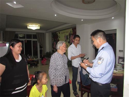 询问不到老人的信息,民警没有放弃,于是带着老人一路走访附近的群众。经过民警细心的走访询问,一名群众提供线索说看到老人是从阳光华庭小区走出来的。于是民警将老人带到该小区,想向附近的群众了解老人是否住在附近时,老人一到小区就激动的对民警说记得是这里了,并一路将民警带到了一住户门前,告诉民警这里就是她的家了。当民警敲开房门,开门的正是老人的孙子关某,关某高兴地拉过老人,询问奶奶你去哪里了。