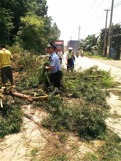 5月10日12时许,龙湖派出所的警察蜀黍接到警情称:位于火山路原兴华造船厂附近山体滑坡,警察蜀黍立即出动前往处理。警察蜀黍到达现场后,发现该处山体滑坡,导致滚落下的大小泥石和树木占据了近大半个路面。警察蜀黍第一时间在滑坡地点放置锥筒,指挥过往车辆有序通行,提醒过往车辆注意行车安全,并马上协同交警部门组织附近村民一起顶着烈日,用柴刀、斧头、拉锯等工具清理道路。经过近两小时清理,路面上的泥土和树木全部清理完毕,道路基本恢复双向通行!
