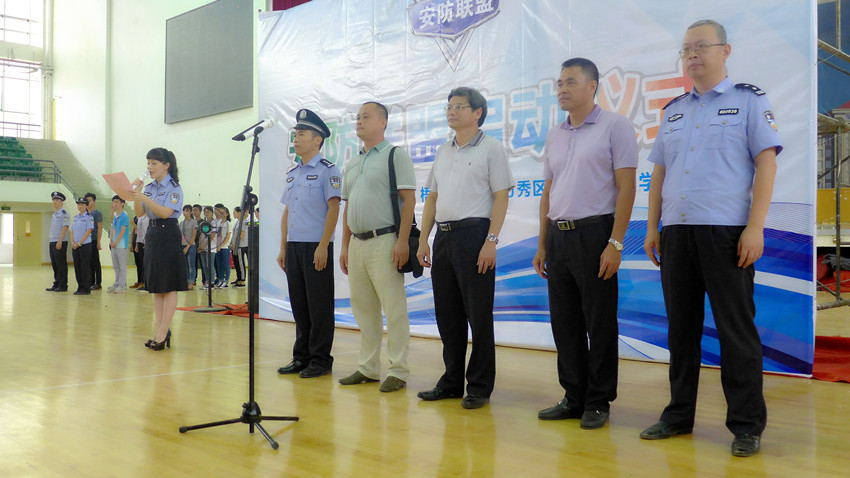 5月27日下午16时30分,万秀公安分局联合梧州学院举办了“安防联盟”启动仪式!出席启动仪式的有:梧州学院学生工作处处长黄健武、梧州市政法委副调研员谢石符、万秀区政法委副书记黄英武、梧州市公安局警察公共关系科科长谢学勤、万秀区公安分局副局长文达富等领导,以及梧州学院各年级辅导员和学生!
