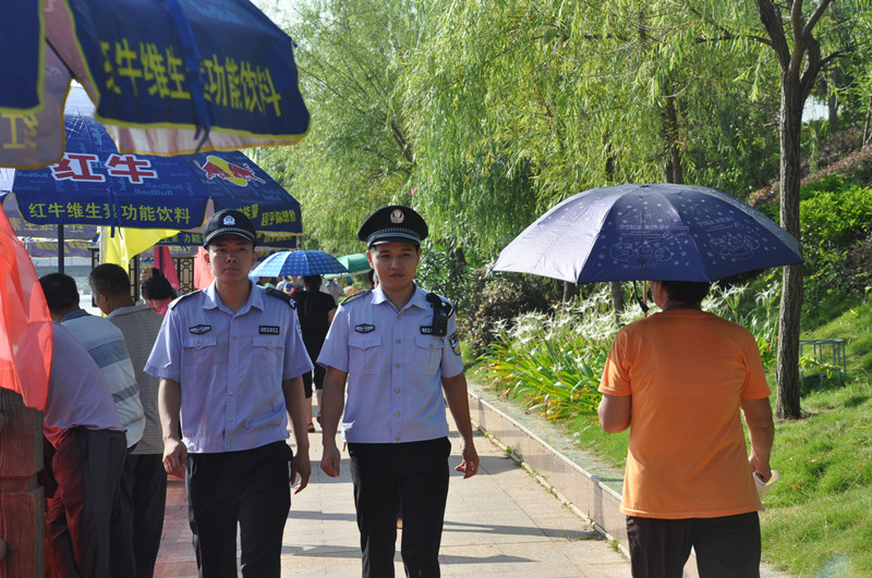 在安保工作中,参战的民警、协警、防暴队员认真按照安保工作方案要求,战高温,冒酷暑,充分发挥“特别能吃苦、特别能战斗”的精神,以务实的工作作风坚守在各自的工作岗位,分别在岑溪市区义昌江岸边的健身公园龙舟比赛起点、南北大桥比赛终点及主席台周边、义昌江沿江两岸及各个主要交通路口开展安全保卫工作,切实做好治安和交通秩序维护,设立警戒线,指挥群众有序文明地观看比赛。比赛结束后,岑溪市公安局又立即把安保警力转移到市人民广场颁奖仪式现场,全力做好颁奖仪式的治安和交通秩序维护工作,确保了颁奖仪式的安全顺利进行。