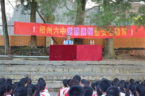 值暑假来临之际,2016年7月7日,梧州市检察院控申科检察官来到梧州市第六中学,为全校师生700多人上了一堂以“法进校园、检察护航”为主题的法制课。