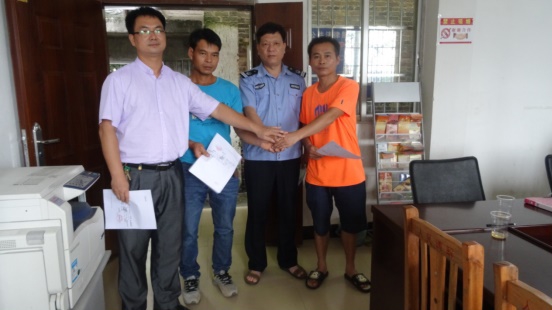 2016年6月16日晚,苍梧县沙头镇当地一所中学学生钟某、潘某,因为一点小摩擦而引起肢体冲突,冲突中造成了钟某的头颅及左肘外伤。随后当时人双方及校方在赔偿方面没有达成协议引起纠纷。在校方多次组织协商无果后,2016年7月5日,沙头司法所及时介入调解,司法所工作人员在详细了解了整件事情来龙去脉的基础上,依据相关法律法规明确了双方的责任的同时,对其家长从情、法、理三方面做工作。最终促成了双方的和解,为这一矛盾纠纷画上了圆满的句号。