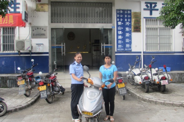 2016年7月15日,蒙山镇派出所与县局刑侦大队联手,为辖区群众追回两辆被盗摩托车。