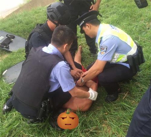 民警赶到现场并将伤人男子制服