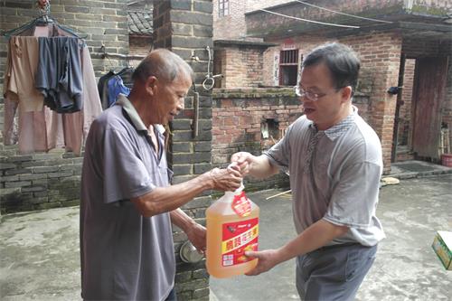 蓝兴瑞检察长将慰问品送到贫困户手中