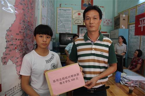 阳光洒在你的脸上,温暖留在我的心里。500元助学金不仅是金钱的资助,更是一片暖暖的爱心,一份深沉的期许。8月25日上午,藤县司法局积极响应县委组织部号召,来到平福乡开展了一场以“点燃希望·爱心助学”为主题的扶贫助学活动。以实际行动实践“两学一做”教育活动,创新开展“双报到”活动,4名受助学子每人领到了500元助学金。