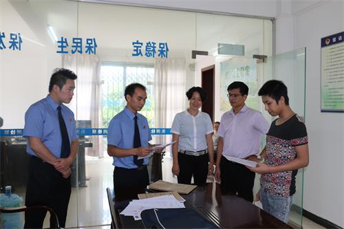 未检办干警向当事人宣读不起诉决定书