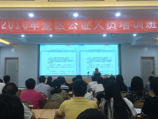 本次培训班邀请了全国公证行业著名专家和区内有影响的公证员授课,以公证工作实务为主要内容,涉及《从公证的视角解读最高法民间借贷的司法解释》、《目前公证业务转型发展的若干实务问题》、《公证行业的改革与发展》、《“互联网+”下的公证业务》、《证据保全的实例分析》、《继承、委托、遗嘱公证需注意的若干问题》等法律理论和实务技能。